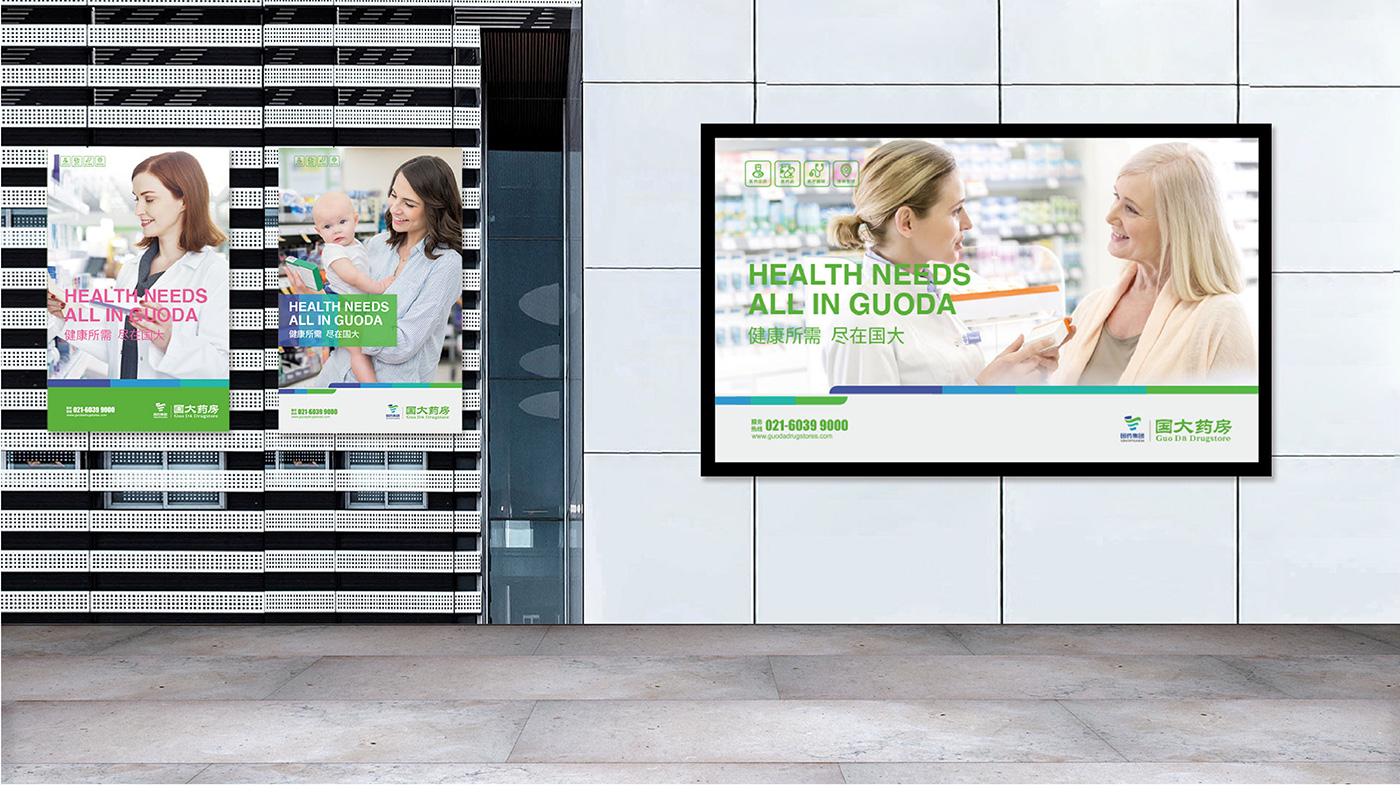 在引入戰(zhàn)投的背景下,協(xié)助國大藥房對品牌進(jìn)行國際化轉(zhuǎn)型升級,主要解決兩個問題,一是如何避免品牌名稱變更造成品牌認(rèn)知的差異,二是品牌驅(qū)動模式架構(gòu)的選擇。對國大藥房品牌標(biāo)志進(jìn)行了更新,并設(shè)計制作出《國大藥房視覺識別系統(tǒng)手冊》,對視覺識別系統(tǒng)進(jìn)行標(biāo)準(zhǔn)化的設(shè)計和規(guī)范,并負(fù)責(zé)宣傳片的策劃方案與籌備拍攝,提升國大藥房的公眾形象和品牌影響力。