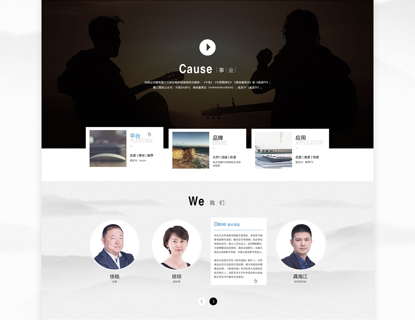 助騰服務墨工文化官網設計開發,通過與客戶的前期溝通和梳理,并通過整合以及重新編排內容,使信息的主次更顯而易見。網站整體風格體現墨工的文化和行業特征,