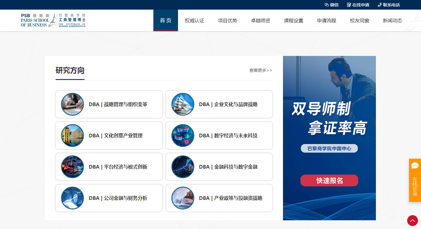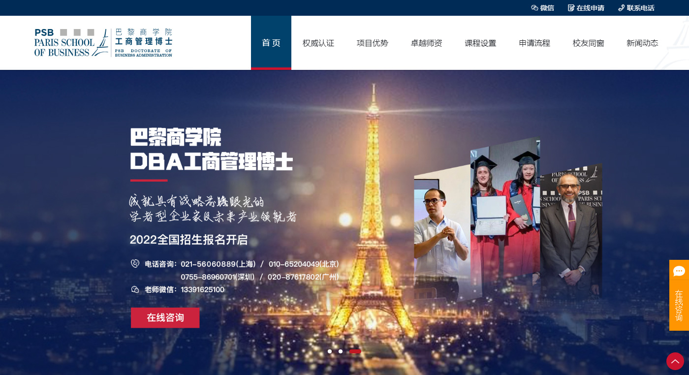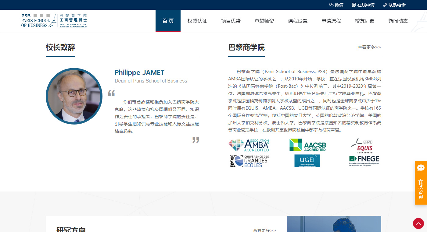 網站建設整體突出巴黎商學院品牌特點、介紹、用途,更具留學網站的特點,和重點突出。網站整體用色沿用LOGO的綠色色調為主色調,延展相似色調,更具形象的體現(xiàn)出學院的研究莊重。