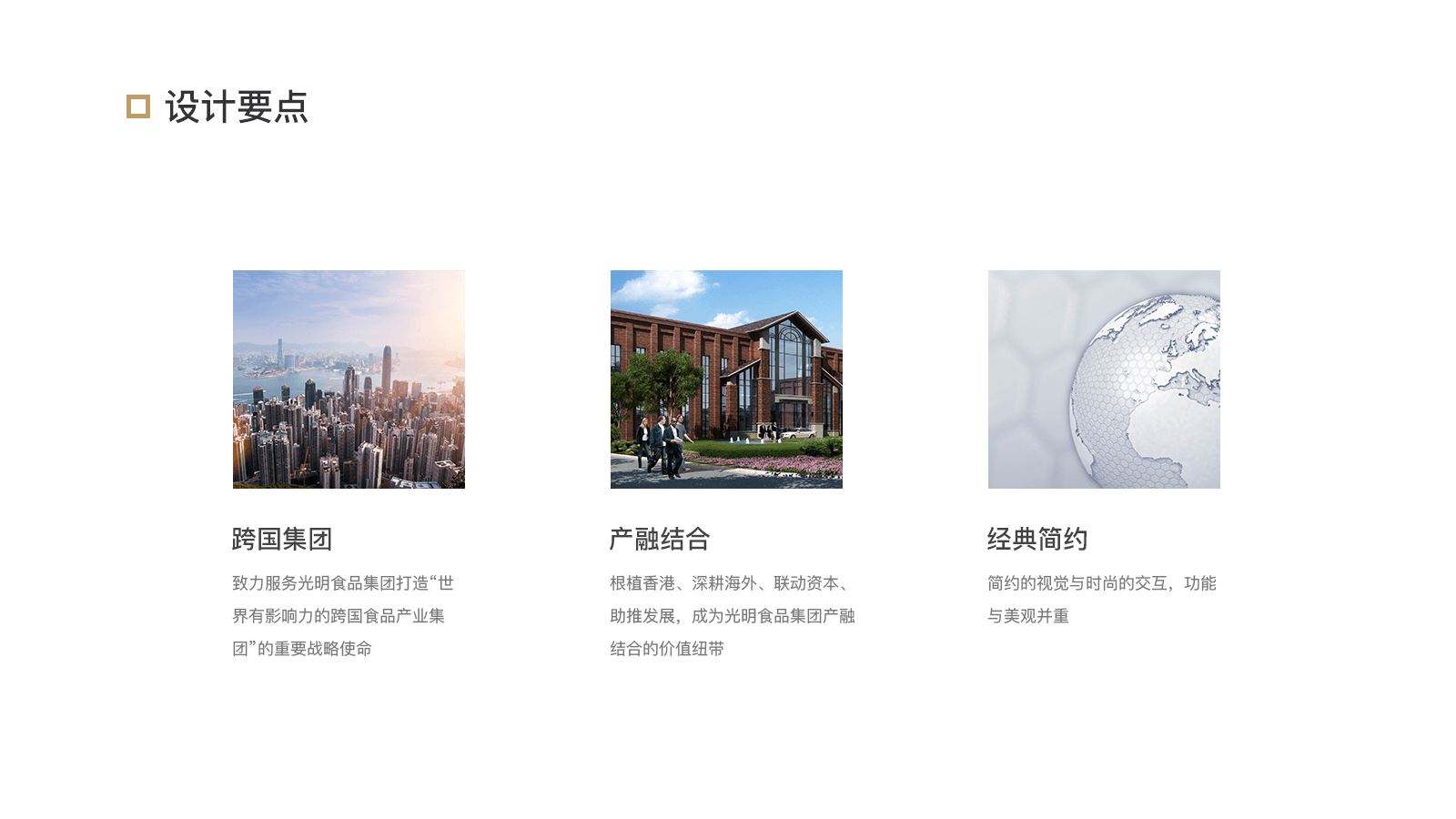 助騰與光明食品國際深入溝通對接,形成了光明食品國際的主要業(yè)務(wù)、戰(zhàn)略愿景、企業(yè)文化的深刻理解,將光明食品國際專業(yè)、誠信、創(chuàng)新、國際化的品牌調(diào)性融入網(wǎng)站設(shè)計(jì)。
